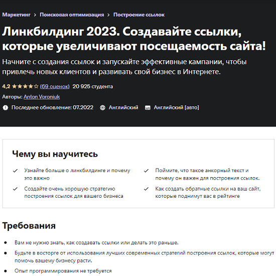 ДОСТУПНО [Anton Voroniuk] Линкбилдинг 2023. Создавайте ссылки, которые увеличивают посещаемость сайта!